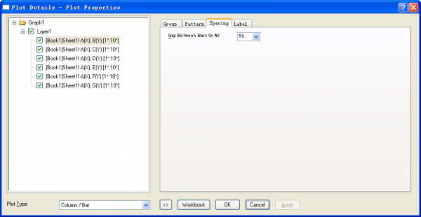 谢谢谢谢,要的就是这个。有一个小小的问题,用59%的spacing画出来两个柱子有一部分重叠,我个人把它改到80%,两个柱子就分开了。