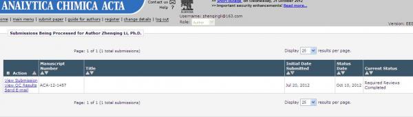 投到analytica chimica acta,状态变为Required Reviews Completed快19天了,希望会有好结果