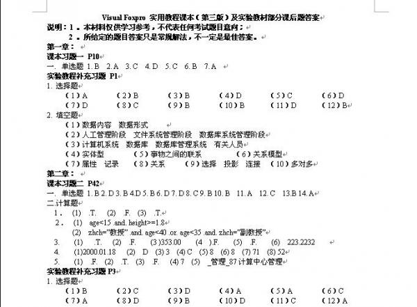 Visual Foxpro 实用教程课本及辅导教材参考答案第三版 Visual Foxpro 实用教程课本及辅导教材参考答案第三版.jpg[ Last edited by zhweijun88 on 2012-10-31 at 23:43 ] |