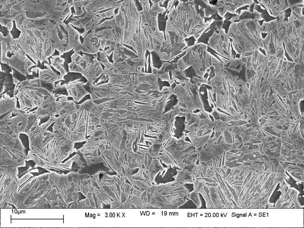 在下有一材料,0.2C-1.5Si-1.9Mn,热膨胀曲线测出来Ac1、Ac3分别为770、870℃,加热到950℃,保温5分钟,然后以50℃/s迅速冷却,组织中除了马氏体外还有少量铁素体,冷却过程中膨胀曲线上除了马氏体相变点并没有出现其他拐点,随后用80℃/s的冷速仍然得到同样的组织。 哪位高手帮我分析一下是什么原因。 |