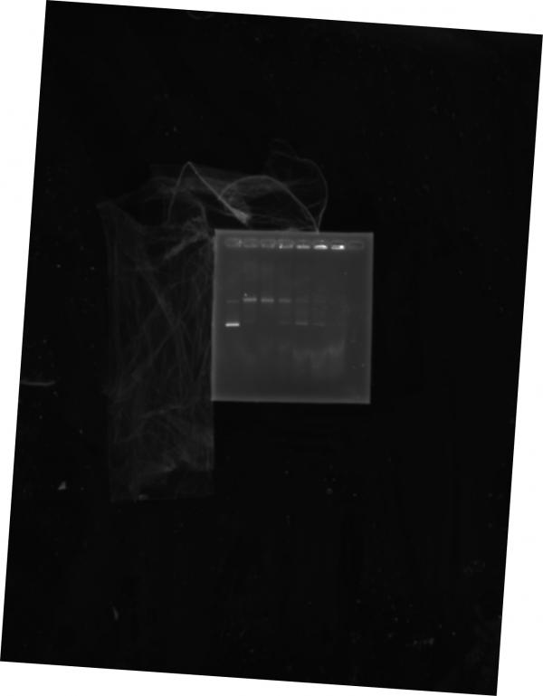 紧急求助!!好心的虫友们,最近在做DNA凝胶电泳,加入一些合成的配合物看是否对DNA有光断裂的效果,跑胶图见附件, 1027 dmp-stcp-1 低浓度.jpg.jpg |