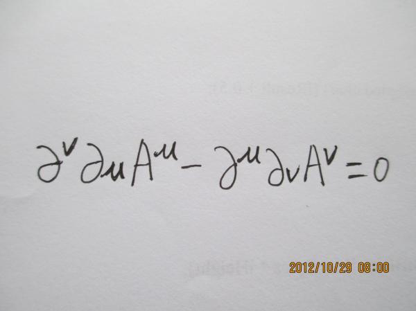 题目弄错了吧~第一个偏微分应该分别是上下指标啊~我猜按照楼主的意思,取Aμ的Lorentz规范就可以把这个式子变成d'Alembert方程了~于是over~
