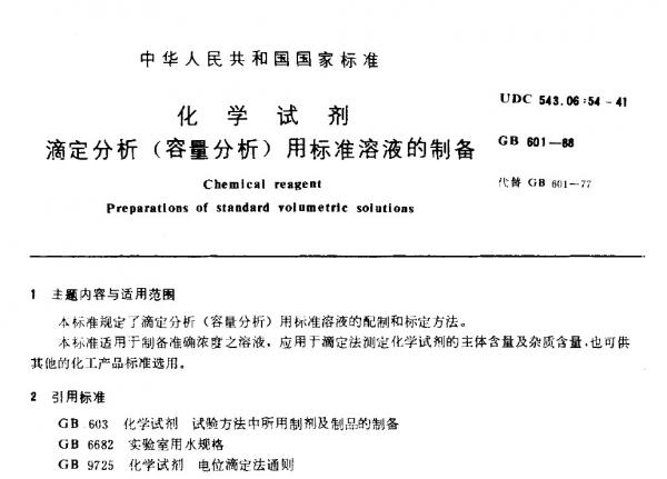 国标:化学试剂滴定分析用标准溶液的制备GB601-88