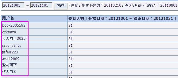 ![]() ![]() 全勤版主名单(共8人,签到31天): book2005593, cxksama, 天天向上3035, sayu_yangy, jiafei1223, avast2009, 爱与雨下, 秋天白云, ![]() ![]() 每人奖励0.02VIP! 2012年10月签到情况 |
