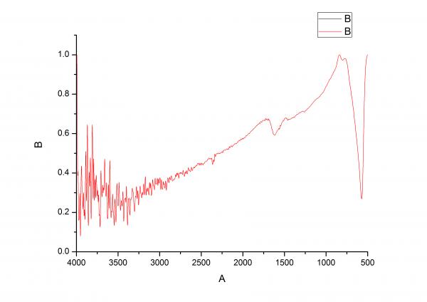 看你的纵坐标,T最小的,都快到0.1了,这说明,样品在KBr中的浓度太大了,建议减少样品用量,再做一个,同时扣一下kBr的背底。 3000-4000之间的峰,一般都是X-H键的。而X-H键,往往容易因为氢键而展宽,变成大包(当然也有例外的情况)。我认为,像图中那么复杂尖锐的峰族,很可能是样品过浓导致的。 570cm-1 Fe-O:是的,我测过Fe2O3,存在该峰。 805cm-1, 1208cm-1,1417cm-1:这些毛刺峰,不好说是你的样品的,因为基线并不平,不好判断。建议扣除KBr背景,再做一下基线,然后分析。 1700cm-1 C=O: 可能是的。 2356cm-1是峰不?不好说。 |