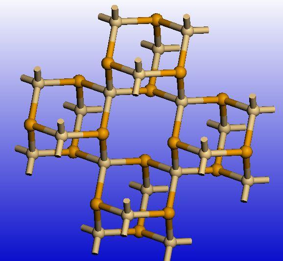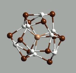 求求 各位大神,帮我用GV构造一个 图片里的结构(Cd13Se13,是12Se和13Cd离子的折皱笼子和一个Se离子在4个Cd离子中间并且相距0.282nm),重金悬赏。。我会追加的 Cd13Se13.jpg |