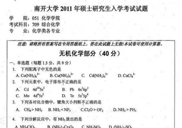 【真题资源】2011南开大学考研综合化学真题