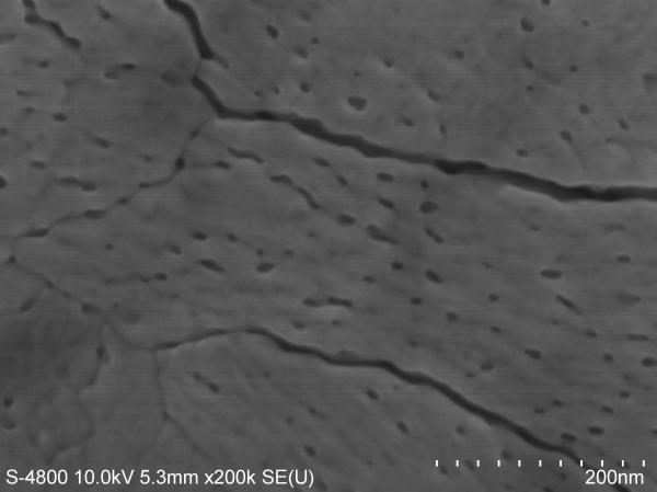 不知道楼主所说的微观结构指的是什么?你上面放的照片放大倍率只有一万倍,相信也看不到微观结构,最多只能看到表面信息,比如表面形貌和起伏以及缺陷等等吧