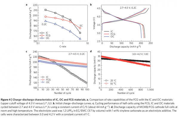 abc图应该是伴电池的数据,而d图是全电池的数据。同时abc图中的是该活性物质的质量比容量,而d图中时这个材料组装正全电池后的容量,而不是比容量。容量=活性物质质量*质量比容量。