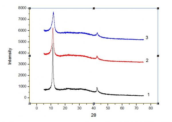 我做的氧化石墨用了三种配比,就是石墨粉与高锰酸钾的配比,1:3、1:4.5、1:6,想看哪种配比做出来的氧化石墨氧化程度高一些,但是感觉测的XRD不是很准确,1、2、3对应的分别是上面的三种配比,按理说1:6应该是氧化强度最高的,但是测出来的却是层间距最小的,所以很矛盾 OQ3{$}UQ18~GEA~ULMAQGQS.jpg |