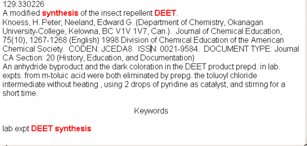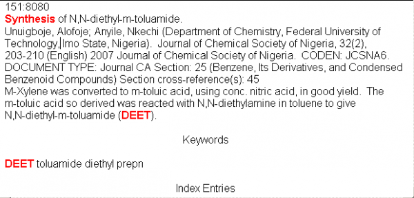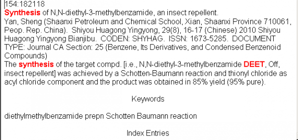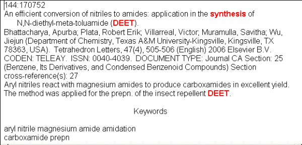 求助DEET(驱避胺)的合成文献