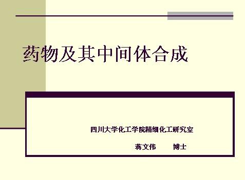 四川大学化工学院精细化工研究室,药物及中间体合成课件! 内容1.jpg 内容2.jpg 内容3.jpg 首页.jpg[ Last edited by lipengbo_sd on 2012-11-5 at 20:11 ] |