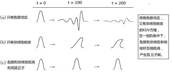 本人做过一段光孤子传输研究,看到这篇科普文章很亲切。 ================================================== 第二十四章﹕孤立子的故事 孤立子是非线性研究的另一个热点。 第一次发现水波中产生的孤立子现象,距今已经有将近180年了。那是1834年8月的一天,在苏格兰爱丁堡市附近的尤宁运河岸边,26岁的造船工程师约翰·司科特·罗素骑马观察船在河中的运动情形时发现的。 之后,罗素这样描述他那天的惊人发现【1】: “我正在观察一条船的运动,这条船沿着狭窄的河道由两匹马快速地曳进。当船突然停下时,河道中被推动的水团并未停止,它聚积在船首周围,剧烈翻腾。突然,水团中呈现出一个滚圆光滑、轮廓分明、巨大的、孤立耸起的水峰,以很快的速度离开船首,滚滚向前。这个水峰沿着河道继续向前行进,形态不变,速度不减。我策马追踪,赶上了它。它仍以每小时八、九英里的速度向前滚动,同时仍保持着长约三十英尺、高约一到一点五英尺的原始形状。后来,我追逐了一两英里后,才发现它的高度渐渐下降。最后,在河道的拐弯处,我被它甩掉了。” 这一“奇特的”、“美丽的”、孤立的水峰令年轻的罗素着迷,而且,他敏感地意识到,自己发现了一个新的物理现象。罗素的直觉不无道理,他是一个经常在河边进行观察和研究的造船专家,成天与水流水波打交道,因此,他坚信这个现象与一般常见的水波截然不同,一般水波是很快就要弥散、消失的,维持不了这么久。此外,罗素也是一个训练有素的船舶设计师,有深厚的物理数学功底,他相信,那时现有的波动理论,包括牛顿的理论和伯努利的流体力学方程,都没有描述过,也无法解释他看见的这种奇特现象,因此,罗素给自己的发现取了个新名字:平移波。后来被学界命名为孤立子,或孤子。 图(24.1):(a)罗素在1834年第一次观察到孤子(平移波); (b)水波中的孤立子现象Phys. Rev. E 86, 036305 (2012); (c)计算机模拟所产生的KDV方程孤立子解【2】 偶然发现的‘平移波’在罗素的脑海中久久挥之不去,为了深入研究这个现象,罗素在自家后院里建造了一座宏大的实验水槽,并且他很快就掌握了产生‘平移波’的方法,重现了他在运河中看到的特殊景象。经过多次实验,反复研究,罗素注意到孤立子的许多特殊性质:一是孤立子的速度与波的高度有关,二是孤立子能够保持其速度和形状长时间地传播。比如,罗素经常在他的实验水槽里产生两个孤立子,一个瘦高个,一个矮胖子。有趣的是,瘦高个总是比矮胖子跑得更快,每次都能追上矮胖子。更神奇的是:两波相遇后,并不会混合乱套而失去它们各自原来的形状和速度,相遇再分开之后,高而瘦的波越过矮胖子,继续快跑,将矮胖子远远地甩在后面。 罗素认为,既然孤立子能够保持其速度和形状长时间地传播,它们应该是流体力学的一种稳定解,罗素对此提出了很多大胆的猜想和预言,但他一人单枪匹马,精力毕竟有限,便希望得到科学界的关注和共同研究。1844年9月,也就是在第一次观察到水波孤子现象的十年之后,罗素在英国科学促进会第14次会议上以《论波动》为题,对他的发现和研究作了一次精彩的报告。报告内容虽然另人们觉得神奇精彩,但却未能得到罗素期盼的结果。因为正如大多数革命新思想出现时遭遇的命运一样,罗素的想法未得到当时科学界权威的认可,反被某些评论者说成是因走火入魔而产生的“反常和漫无边际的猜测”。 在罗素去世十年后,1892年,两位荷兰数学家从浅水波运动的KdV方程,果然得到了与罗素所描述现象类似的孤立子解(图24.1c)。KdV方程证实了罗素观察到的两个孤波碰撞时发生的情况。两个弧波相交后,并不互相混合和弥散,而是各自保持它们原来的速度、方向和形状,完整复现出来。这种行为类似于微观粒子发生碰撞时的情形,这也是为什么将此现象称为孤立‘子’的原因。 从物理学的观点来看,孤子是物质色散效应和非线性畸变合成的一种特殊产物。 图(24.2):色散和非线性崎变抵消,形成孤立子 水波和光波等波动现象形成的波峰,都可以描述为由许多不同频率的正弦波组成。这些不同频率的波以不同的速度传播,这就是色散现象。在波动的线性理论里,各正弦波彼此无关,没有什么东西把这些不同频率的波捏合在一起,所以它们各自为政,即使一开始时候形成了一个巨大的波峰,这个波峰中的各个频率波也会因色散现象导致速度不同而使波峰很快地改变形状,破碎成许多小小的涟漪,形成浑沌而弥散开来。这是只有色散的情况,如图(24.2)中的上图所示。 从另一方面,流体分子间存在的非线性效应使得波峰的形状发生另一种类型的崎变,这种非线性崎变作用,如图(24.2)中的中图所示。 在KdV方程中,因为既考虑了色散现象,又包括了非线性效应的影响,所以,在一定的条件下,这两种作用互相抵消。色散效应要使得不同频率的子波互相分离,而非线性效应又将这些子波拉回来紧紧地拴在一起,这样一来,最后结果就使得原始的波峰既不弥散,也不崎变,而能够长时间地保持原状滚滚向前,这就形成了罗素看到的孤立波,也就是在图(24.2)中的下图所示的情形。 尽管数学家已经证明了KdV方程的确存在类似孤立子的解,人们对罗素发现的孤立子的重要性仍然认识不足。孤立子的命运一直到上世纪60年代才有了转机。20世纪50年代,美国的三位物理学家费米、帕斯塔和乌拉姆,利用当时美国