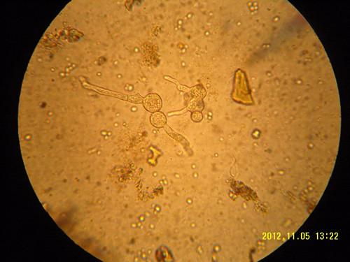 那是霉菌,圆的是孢子头,下面的是分生孢子梗