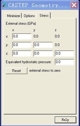 晶体在常压下优化的晶体结构为起始点,我们施加直到IOGPa的静压力,每次增 加2GPa,在这5个压力点下我们先优化晶胞的结构,得到晶胞参数后,再优化其 内坐标。 请问这个在MS castep计算时是如何实现? 是 这个吗? |