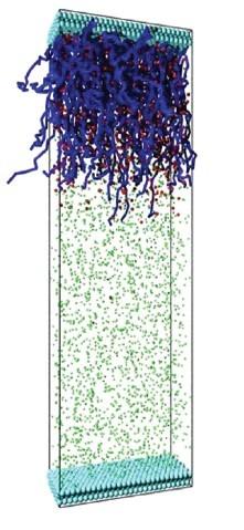我准备采用DPD模拟聚合物刷(聚电解质)在溶液中的状态,通过查文献发现时通过spring-spring力在面上建立一个n*n的层状结构,然后将聚合物连接在层的表面,从而得到一种类似于刷子的结构。但是我现在不知道如何建立这个层状结构?请高手给出详细的操作过程!!!最后得到的效果图如下: 1.jpg |