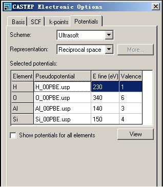 谢谢您的指点,可我还有一些困惑: 1、有些资料上说收敛性测试是改变截断能或K点对系统进行单点能计算,你说是对系统进行结构优化,到底哪种方法是正确的?而且,我做过比如固定截断能,改变K点对同一系统进行结构优化,如果总能趋于稳定,但晶格常数却变化很大,那该如何处理?就是说通过什么途径的到晶格常数的稳定值。 2、上图给出的选项卡中,应该就是对每个元素可以进行赝势的选择,关键是什么时候需要选择,选择的标准是什么? 3、您说自旋极化是针对有磁性的体系,请问如何判断体系是否有磁性(不好意思,本人原本不是学化学的,可能问的问题比较低级),或者我给出的这个体系[Al4Si8O20(OH)4]是否具有磁性? 4、晶格参数和实验越接近就越好的话,除了调节截断能、K点以及赝势的种类,还可以通过调节哪些参数提高计算的准确度,以及选择这些参数有什么标准? 请各位虫友多多指教!!! |