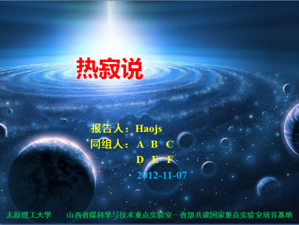 本内容由用户自主发布,如果其内容涉及到知识产权问题,其责任在于用户本人,如对版权有异议,请联系邮箱:xiaomuchong@tal.com - 附件 1 : 热寂说-haojs2012-11-7_03版.ppt