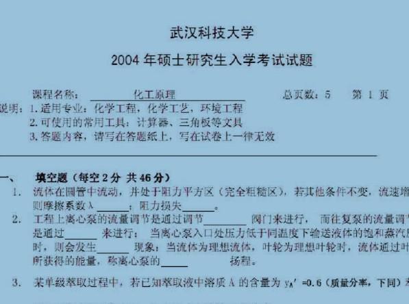 【考研试题】武汉科技大学考研化工原理2004-2009试题