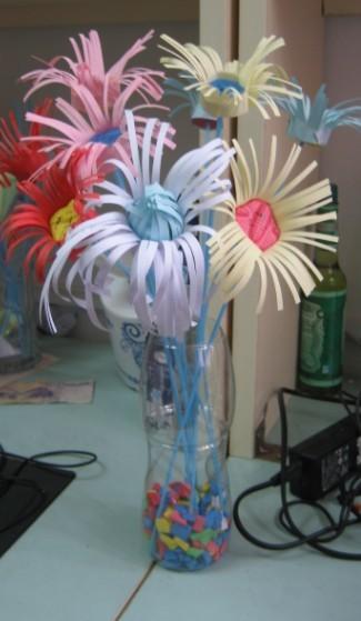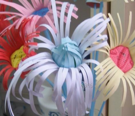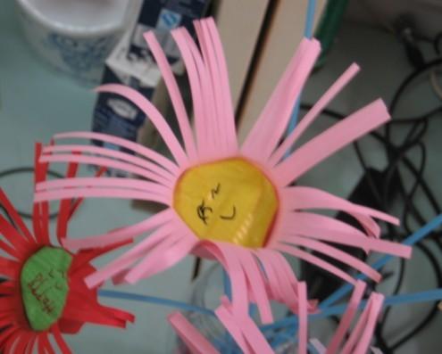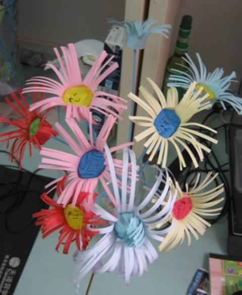 It is easy to make it. Waste papers, sponge,or you can use bottle cap replace the stamen. Write "happy word or Biaoqing",is it funny. |