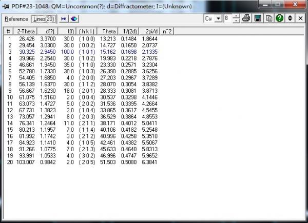 | 对样品进行XRD测试以后得到的是TiO2锐钛矿的峰,可是怎么在峰上标晶面,请问每个峰与晶面的对应关系是什么?谢谢 |