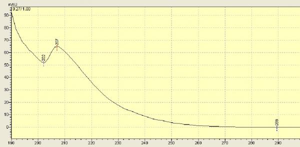 HPLC的溶剂峰后面跟着一个杂质峰,没有办法除去。用异丙醇做流动相,不过色谱柱,一直进样异丙醇色谱溶剂,检查一直有这个杂峰。大家觉得这个杂峰是什么呀?应该不是空气峰吧,下面是该杂质紫外吸收光谱图 48FCA5]$UO91B(CHL{G@NUD.jpg |
