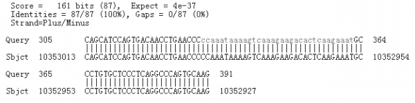 NCBI比对一条序列时,比对结果出现了以上一段结果。问题是,Query中“ccaaataaaagtcaaagaagacactcaagaaat” 这段是小写的,其他的都是大写的。这个小写不知代表什么特殊的含义,有知道的吗? 请高手指教 ncbi blast.PNG |