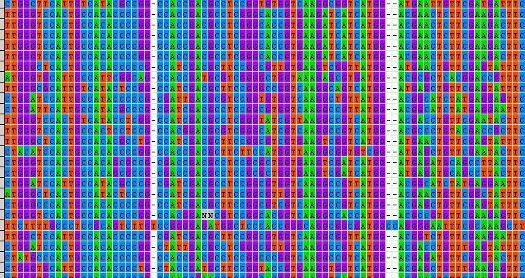 测序结果使用MAGA5比对后有很多空白,不知何原因,请高手指导!