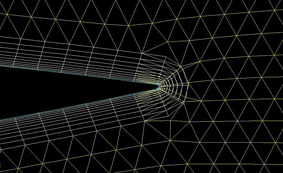 划分翼型的边界层网格时,当翼型后缘为尖角时,为什么无法生成边界层,改为圆弧时,虽然可以生成边界层,但是划分网格的时候为什么会出现图片5 所示的问题啊?后缘那个地方乱七八糟的,求高手解答,既能得到较好的网格,又能划分出边界层,我该怎么做呢? 1.png 2.png 3.png 4.png 5.png 4.png |