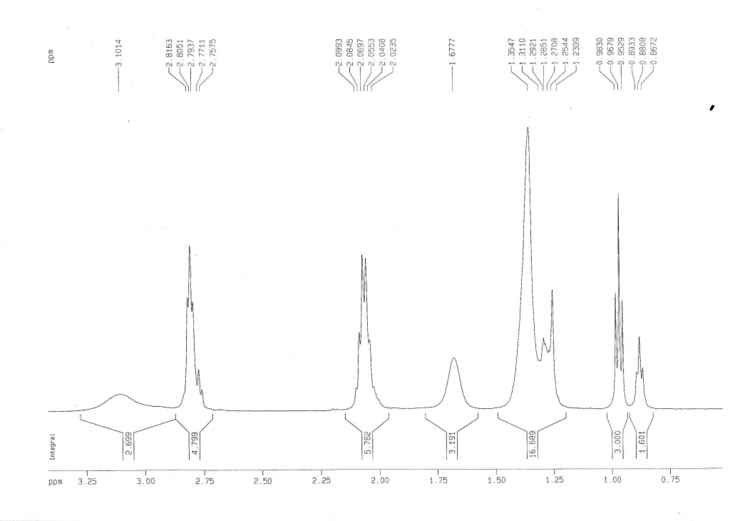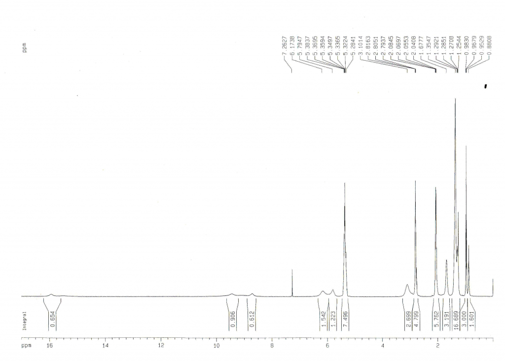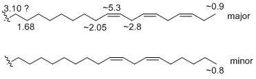 看谱图感觉应该是个脂肪酸, 想知道大概是个什么结构, 还有是不是不纯? 这个谱其实很久了,一直没去管, 但最近分到一个萜类化合物,好像带了一个这个侧链, 所以想看看到底这是一个什么化合物。 谢谢各位帮忙! 全谱 放大谱 |
