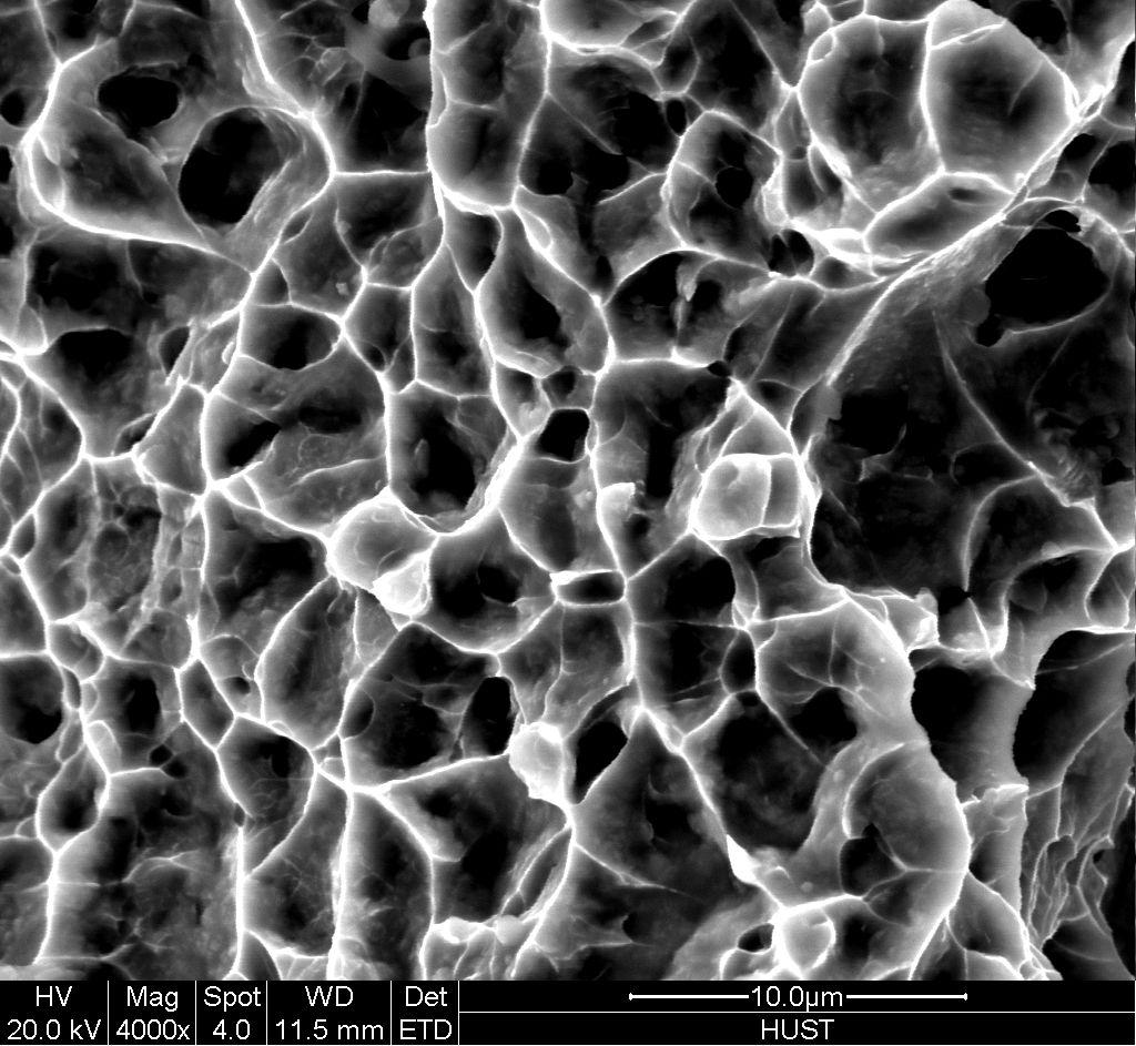 钛合金TC4在准静态下与高应变率的断口SEM图,断裂高应变率下的是45°剪切+韧性断裂(由宏观形貌+韧窝);准静态就是韧性断裂(由宏观形貌+韧窝);请问底下两图可以看出什么区别,比如韧窝深浅等,(有个同学说两个图差不多)求高手指导。 准静态 高应变率 |