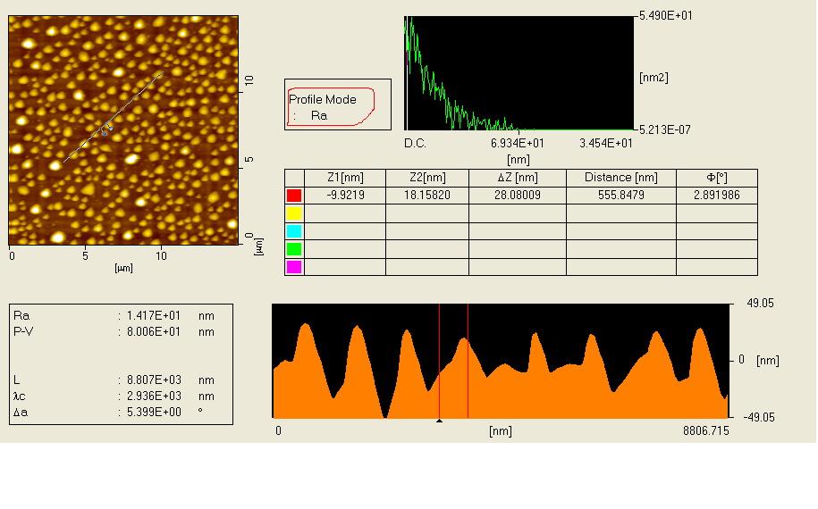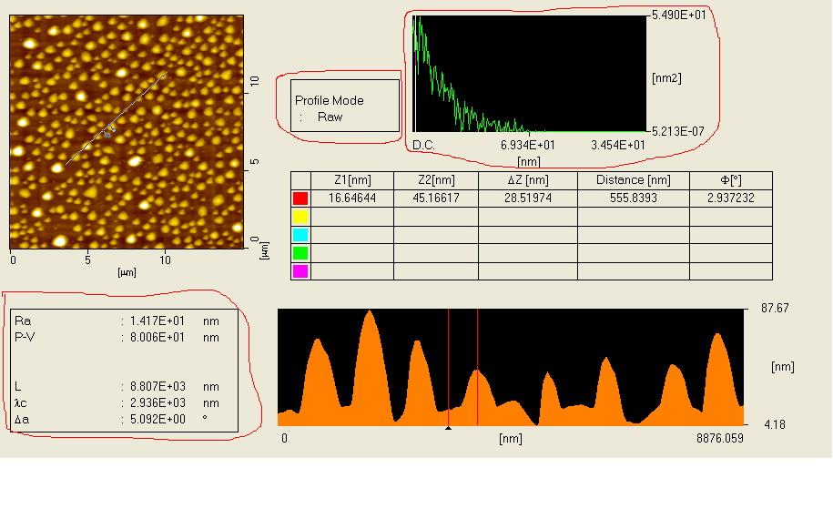 小虫想请教下AFM图分析:最近用AFM测了薄膜的表面形貌,但是那软件不太会用,比如薄膜上有杂质产生了阴影,平滑什么的不怎么会,还有就是那个剖面图中字母代表什么意思(在图中圈起来的)。我们用的软件是SPI3800I。 5.jpg 2.jpg 3.jpg 4.jpg |