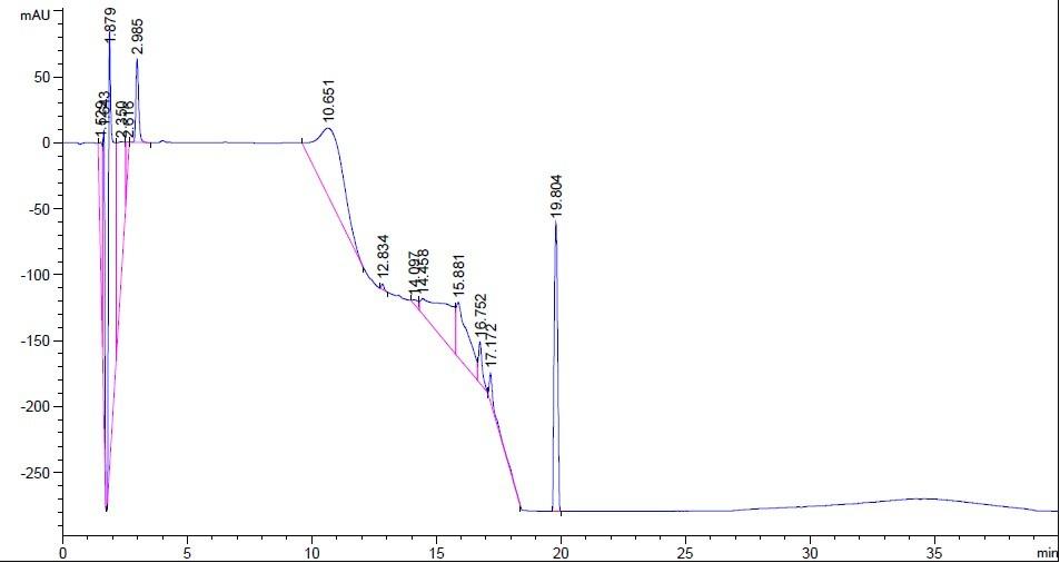 你梯度洗脱的时间点是多少呢?推测是梯度洗脱时,浓度梯度急剧变化引起的。
