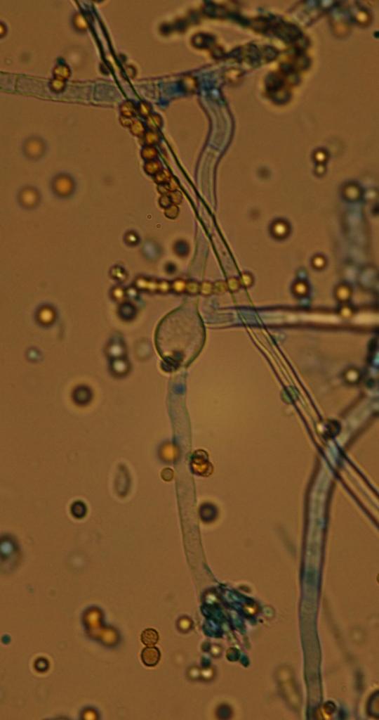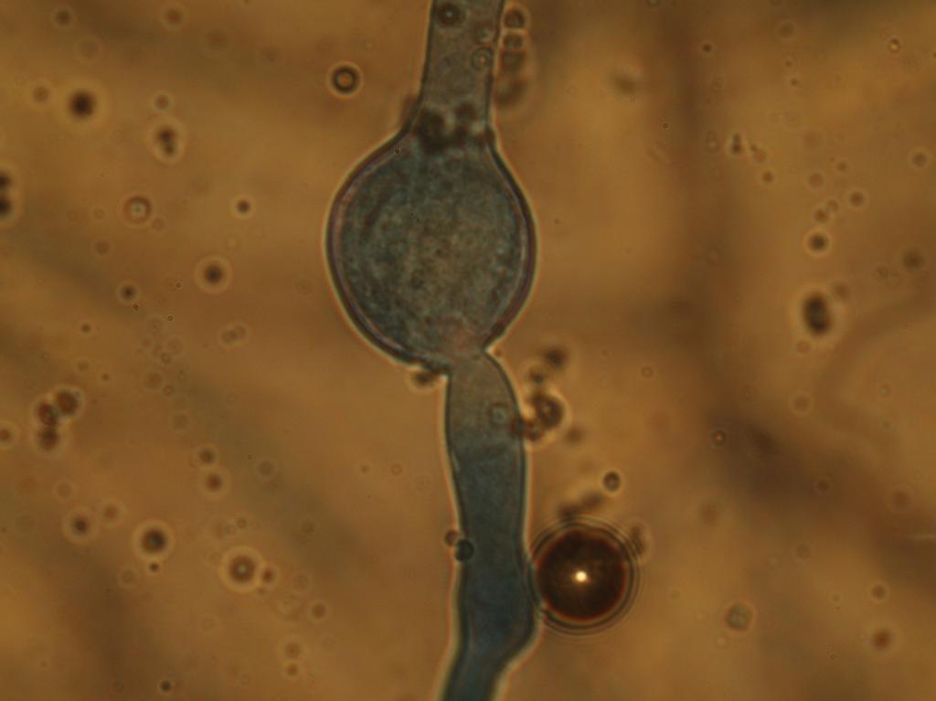 霉菌形成的厚垣孢子一般都是圆形或椭圆形的,比较规则;这里好像是霉菌的分生孢子形成过程,只不过是变异的过程,仅有一个分生孢子形成。不知道您可统一我的观点?另外您可判断出这是曲霉还是犁头霉?