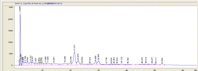 如下图,当只有流动相时,吸收峰是很稳定的在基线上,分离标准品出峰是不会漂的,但是分离混合品时峰则会漂流这100 mau并一直停留在此处,到六十分钟后又会逐渐回落至基线。 是有些混合品只能这样吗?还是我的分离条件果不太合适? 121122_1.gif |