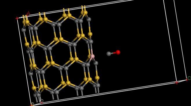 我以前做的碳化硅纳米管吸附一氧化碳模型,使用笛卡尔坐标 做出来是这样的 只有一个CO分子在上面 现在是做Si吸附氢气的模型 可是输入氢原子的笛卡尔坐标后怎么成了这样子 好多氢原子 这是因为周期性么?怎么才能恢复到吸附一氧化碳模型那种状态? |
