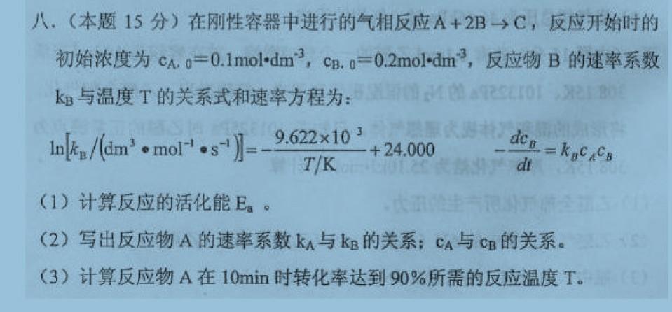 求助一道物理化学题 2006年北京理工大学考研真题第八题 详细解析