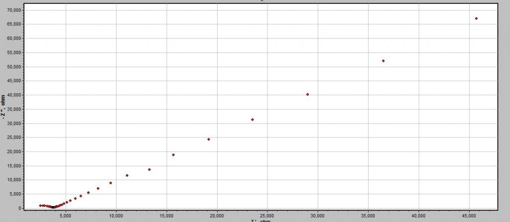 拟合出来的电阻跟截面积有很大的关系 我想算一个高分子膜的电导率,电导率=L/(RS),S是截面积,R是拟合电阻,L是电极间距。 这样的话,截面积不是重复作用了吗 另外,我测出的阻抗谱是这样的,用(QR)(QR)合适吗?如果不合适,应该用什么呢,对电化学着实不懂。 阻抗谱.jpg |