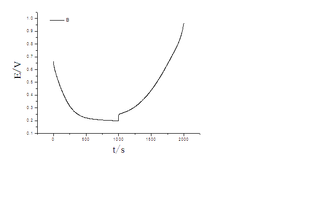 我自己用Autolab做了一个图,但不知道怎么用这个图中的数据来做出文献中的充放电曲线图(电压-容量图)请各位指导指导,我这个图有什么不妥吗?我也不知道用电化学工作站做出的图是不是这个图,我用的是计时电位法。 电压范围设置的是0—1V,电流设置的是-0.5mV和0.5mV, 1jpg.GIF |