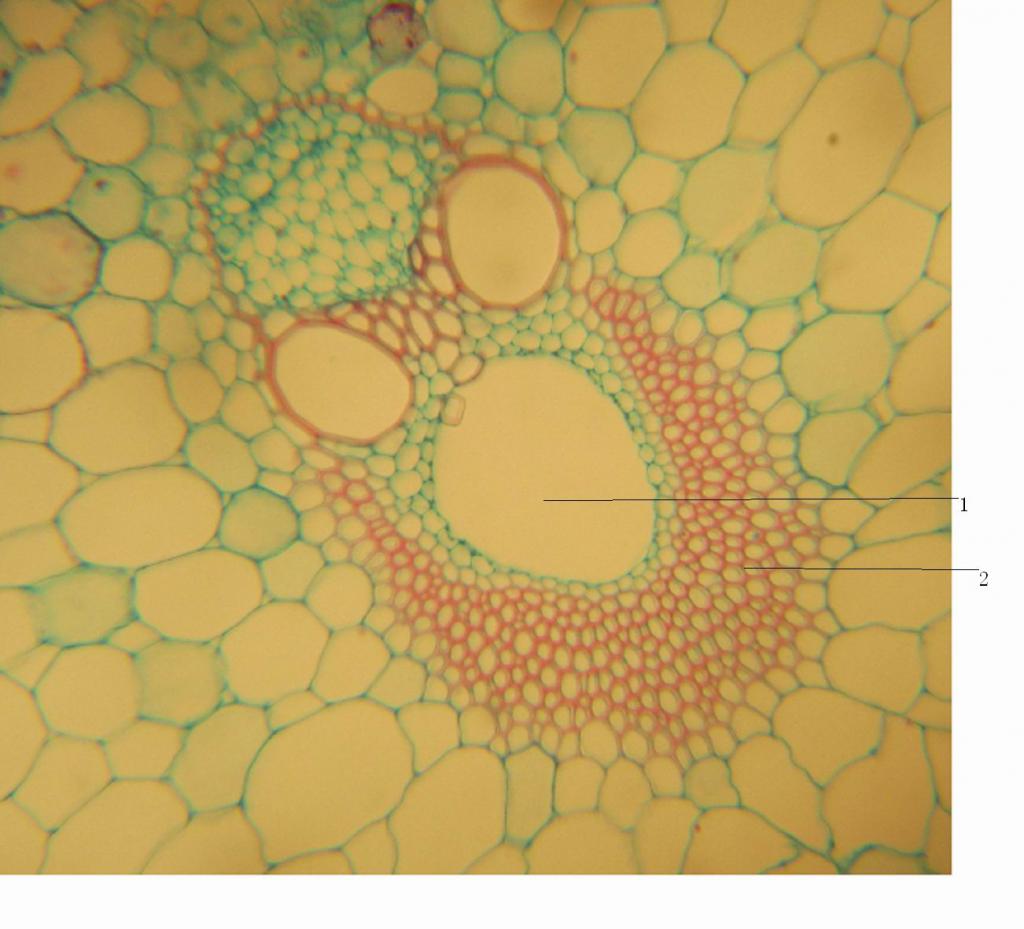 请专家给说明一下图中维管束中的1,2的结构属于何组织,准确的名称。