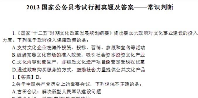 【真题资源】2013国考《行测》真题答案及解析(全)