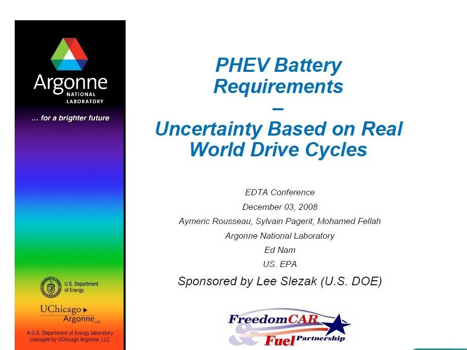 阿贡实验室PHEV电池要求-PHEV Battery Requirements