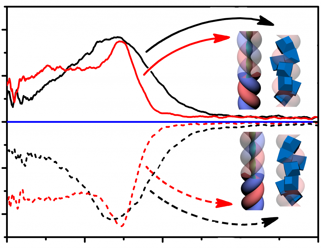 最新的一期Nature Communications上报道了一种光学活性的TiO2,作者宣称首次发现了无机物的一种新的产生光学活性的机制,并以TiO2为例,合成出了一种双股螺旋的TiO2纳米纤维,焙烧之后,产生的纳米锐钛矿晶体仍然能保持之前的双股螺旋的形式进行排列,研究表明,这种特殊排列的超级结构的TiO2材料吸收能量后,会发生从价带到导带的电子跃迁,在不对称的场的作用下,使这种无机材料对圆偏振光发生响应,使其产生相应的光学活性。这种纯的无机材料的基于电子跃迁的光学活性,将使得这种材料在光电及其它领域产生新的应用。