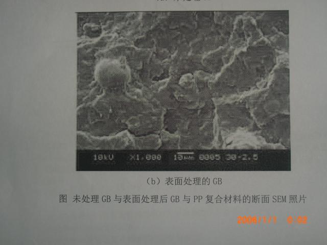 给出的分别是未处理的玻璃微珠(GB)和处理后的GB与PP复合材料的SEM,图不太清晰,哪位高人给分析一下处理前后对材料性能有什么影响啊?