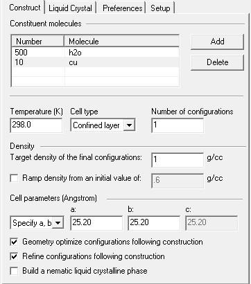 菜鸟求问: 用AC建模,自己先尝试500个水分子(自己画的)和10个Cu分子, 就是先画1个水分子,再新建1个Cu,然后用AC 建模,500个水分子,10个铜原子。。。但是建模的时候老是错误。。。好像是说缺少力场 该怎么处理啊。。。后面选项卡我选compass 力场了啊 大神求教啊。。。 |