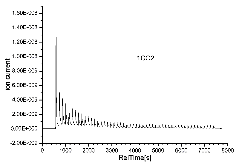 二氧化锰催化燃烧二甲醚,在氦气气氛下反应,用quadstar 32-bit检测气体组分,下面是得到二氧化碳的图,如下图,横坐标和纵坐标代表什么意思呢?纵坐标能代表浓度变化吗?第一次做质谱,希望各位虫友指教指教。小女子非常感谢。 CO2.gif |