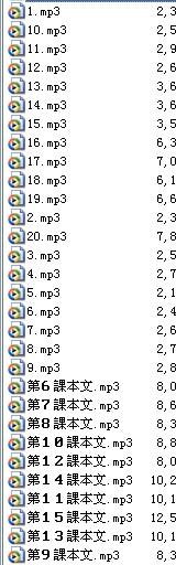 之前要找《上級から学ぶ》的录音,但下来后没有1-5课的课文录音,但有1-20段的录音,不是那个书里的,有谁知道那1-20段的录音的原文,下面有第1,2,20段的mp3,哪位高人指点下,谢啦! T[VU@I)W`P012P51WSPDWD8.jpg |