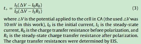 通过公式计算锂离子迁移数。