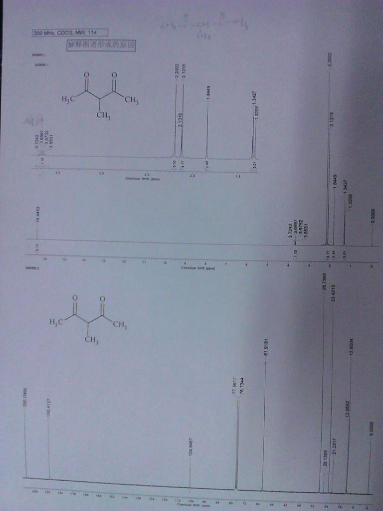 解谱能力太弱 求助虫虫们。 谁能分析一下化合物形成峰的原因啊? 个人感觉应该是 烯醇互变,但是如何判断比例,各个峰怎么解释 C谱 位移值23--28处 四个峰如何解释? ![]() ![]() ![]() 67499986_SendPhoto_20121127181938_2.jpg [ Last edited by hao1380701 on 2012-11-27 at 20:44 ] |