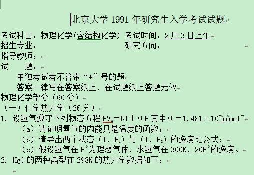【真题资源】物理化学 北京大学91-00 北京化工 01-02哈工大00武汉大学 等 考研真题